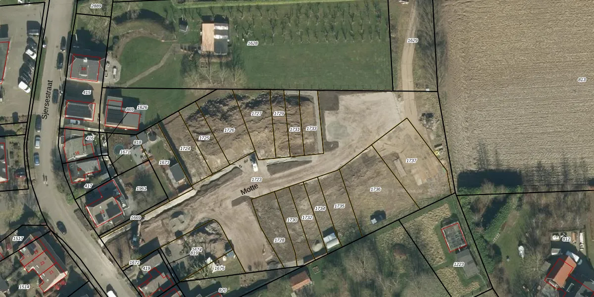 Het perceel waarop Motte 6 staat heeft een oppervlakte van 109 m². Dit is een middelgroot perceel. De perceeloppervlakte wordt geregistreerd door het Kadaster. Gedetailleerde informatie over de maten van dit perceel kunt u vinden in het rapport Kadastrale kaart met maatvoering van Motte 6.