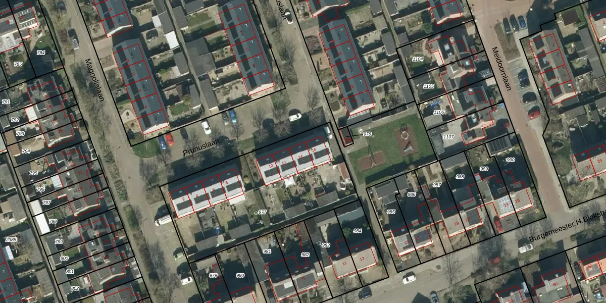 Prunuslaan 14 is gelegen op kadastraal perceel WDC00E977. Deze kadastrale aanduiding is uniek en wordt gebruikt door het Kadaster om eigendomsrechten en andere zakelijke rechten vast te leggen. Het perceel maakt onderdeel uit van de kadastrale gemeente Woudrichem.