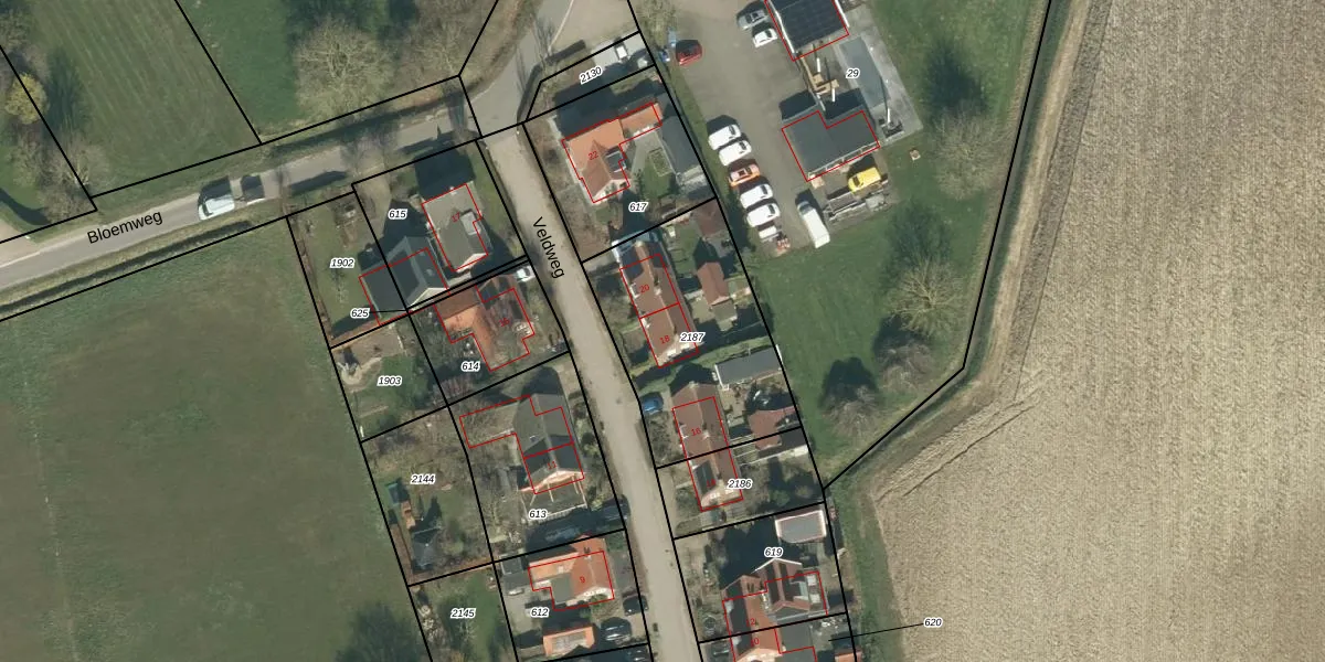 Veldweg 18 is gelegen op kadastraal perceel WDC00D2187. Deze kadastrale aanduiding is uniek en wordt gebruikt door het Kadaster om eigendomsrechten en andere zakelijke rechten vast te leggen. Het perceel maakt onderdeel uit van de kadastrale gemeente Woudrichem.