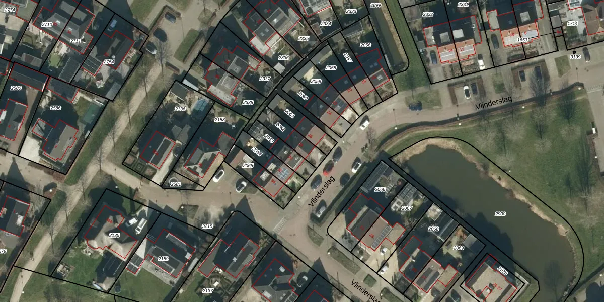 Gebruik de zoekbalk of klik op een perceel voor informatie over de adressen binnen dit perceel.