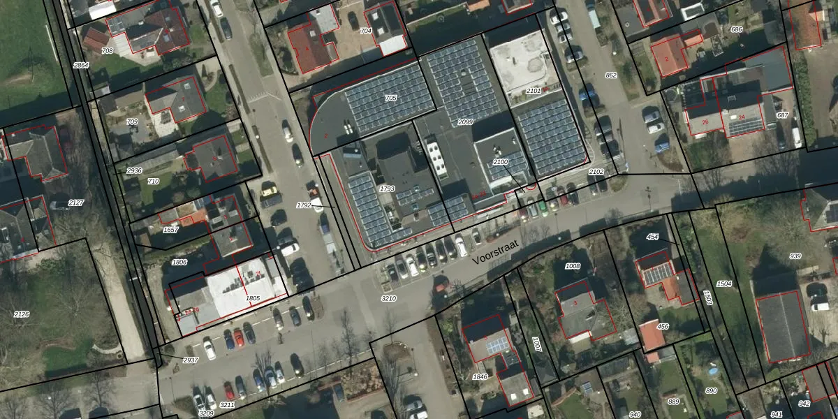 Het perceel waarop Voorstraat 2-c staat heeft een oppervlakte van 688 m². Dit is een groot perceel. De perceeloppervlakte wordt geregistreerd door het Kadaster. Gedetailleerde informatie over de maten van dit perceel kunt u vinden in het rapport Kadastrale kaart met maatvoering van Voorstraat 2-c.