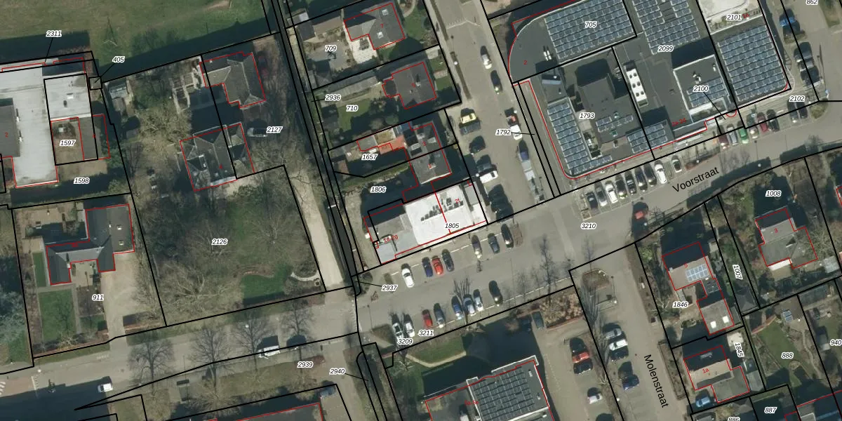 Het perceel waarop Voorstraat 2-e staat heeft een oppervlakte van 325 m². Dit is een groot perceel. De perceeloppervlakte wordt geregistreerd door het Kadaster. Gedetailleerde informatie over de maten van dit perceel kunt u vinden in het rapport Kadastrale kaart met maatvoering van Voorstraat 2-e.