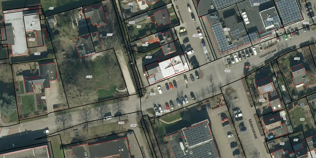 Het perceel waarop Voorstraat 2-g staat heeft een oppervlakte van 325 m². Dit is een groot perceel. De perceeloppervlakte wordt geregistreerd door het Kadaster. Gedetailleerde informatie over de maten van dit perceel kunt u vinden in het rapport Kadastrale kaart met maatvoering van Voorstraat 2-g.