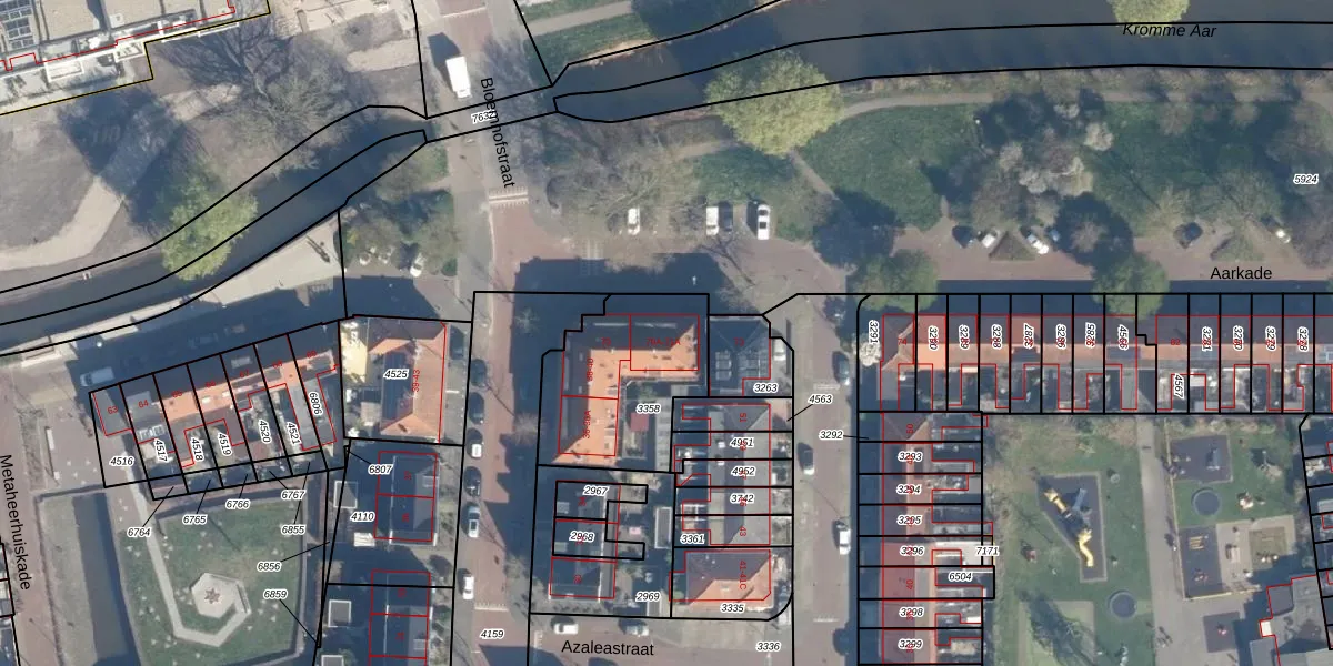 Aarkade 71 is gelegen op kadastraal perceel ALD00C3358. Deze kadastrale aanduiding is uniek en wordt gebruikt door het Kadaster om eigendomsrechten en andere zakelijke rechten vast te leggen. Het perceel maakt onderdeel uit van de kadastrale gemeente Aarlanderveen.