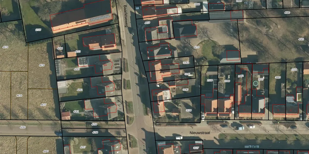 Het perceel waarop Baarleseweg 43 staat heeft een oppervlakte van 225 m². Dit is een middelgroot perceel. De perceeloppervlakte wordt geregistreerd door het Kadaster. Gedetailleerde informatie over de maten van dit perceel kunt u vinden in het rapport Kadastrale kaart met maatvoering van Baarleseweg 43.