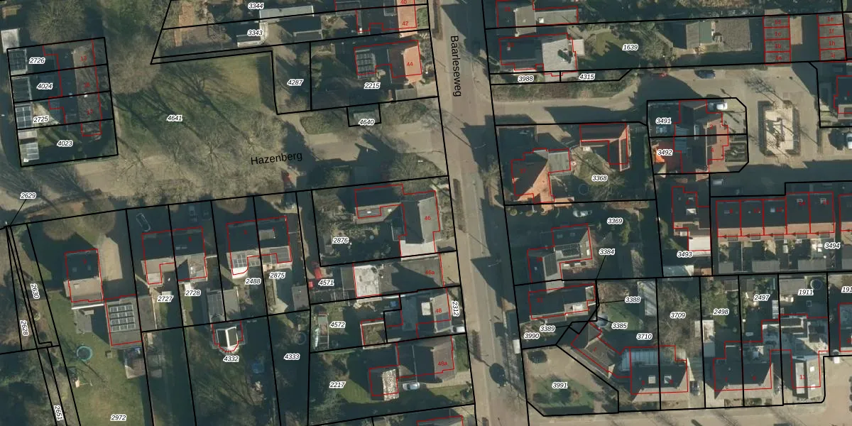 Het perceel waarop Baarleseweg 46 staat heeft een oppervlakte van 577 m². Dit is een groot perceel. De perceeloppervlakte wordt geregistreerd door het Kadaster. Gedetailleerde informatie over de maten van dit perceel kunt u vinden in het rapport Kadastrale kaart met maatvoering van Baarleseweg 46.
