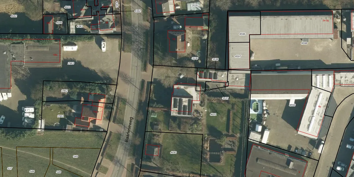 Baarleseweg 63 is gelegen op kadastraal perceel APN03H4691. Deze kadastrale aanduiding is uniek en wordt gebruikt door het Kadaster om eigendomsrechten en andere zakelijke rechten vast te leggen. Het perceel maakt onderdeel uit van de kadastrale gemeente Alphen en Riel.