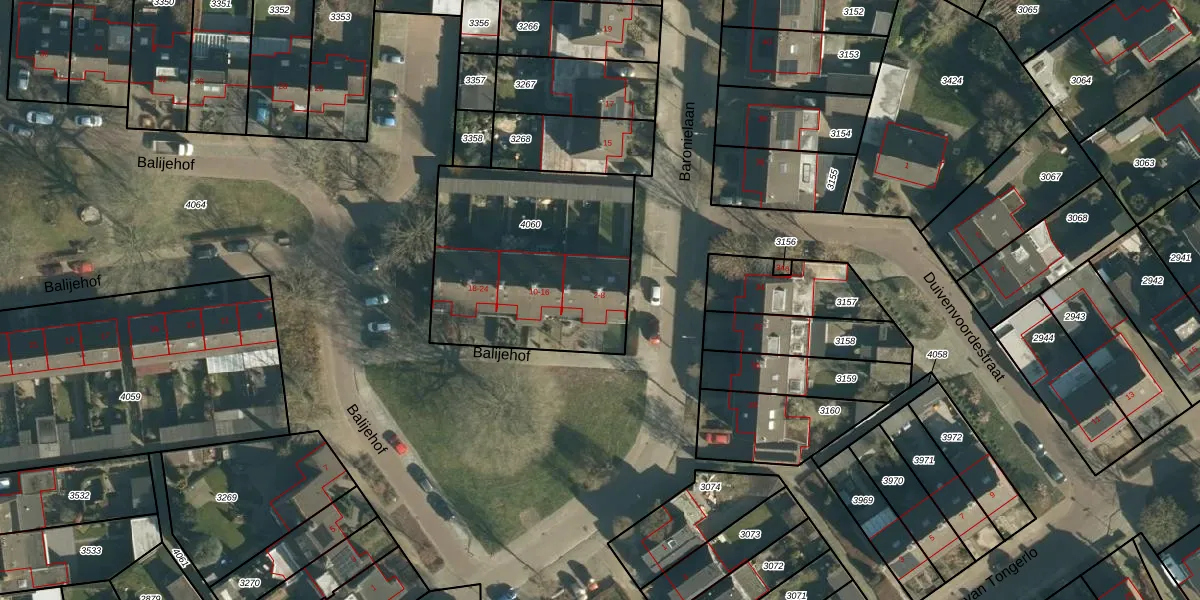 Het perceel waarop Balijehof 4 staat heeft een oppervlakte van 985 m². Dit is een groot perceel. De perceeloppervlakte wordt geregistreerd door het Kadaster. Gedetailleerde informatie over de maten van dit perceel kunt u vinden in het rapport Kadastrale kaart met maatvoering van Balijehof 4.