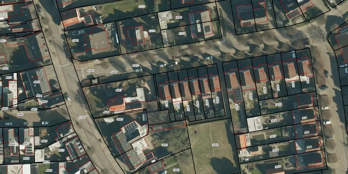 Het perceel waarop Baronielaan 4 staat heeft een oppervlakte van 164 m². Dit is een middelgroot perceel. De perceeloppervlakte wordt geregistreerd door het Kadaster. Gedetailleerde informatie over de maten van dit perceel kunt u vinden in het rapport Kadastrale kaart met maatvoering van Baronielaan 4.