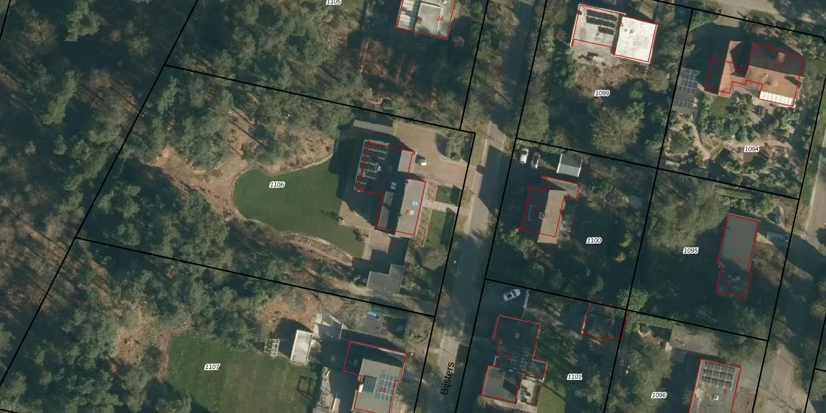 Het perceel waarop Bijsters 20 staat heeft een oppervlakte van 3775 m². Dit is een zeer groot perceel. De perceeloppervlakte wordt geregistreerd door het Kadaster. Gedetailleerde informatie over de maten van dit perceel kunt u vinden in het rapport Kadastrale kaart met maatvoering van Bijsters 20.
