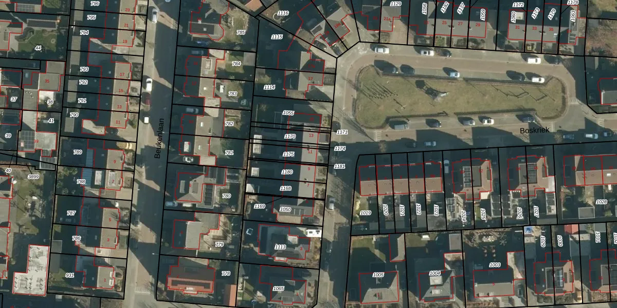 Boskriek 11 is gelegen op kadastraal perceel APN03M1175. Deze kadastrale aanduiding is uniek en wordt gebruikt door het Kadaster om eigendomsrechten en andere zakelijke rechten vast te leggen. Het perceel maakt onderdeel uit van de kadastrale gemeente Alphen en Riel.