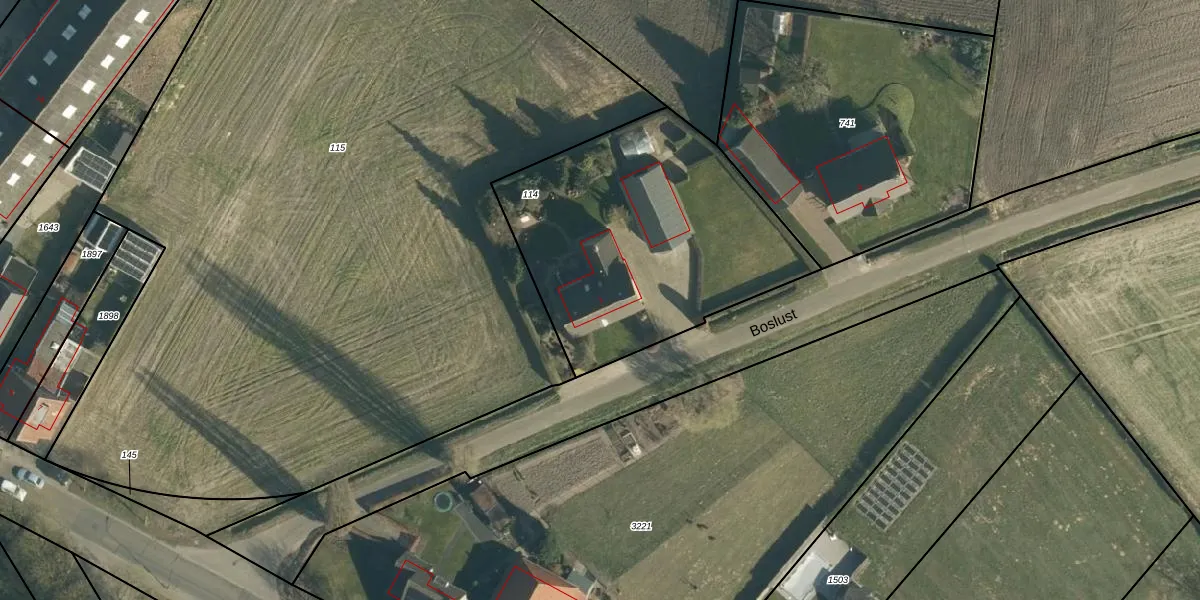 Boslust 1 is gelegen op kadastraal perceel APN03M114. Deze kadastrale aanduiding is uniek en wordt gebruikt door het Kadaster om eigendomsrechten en andere zakelijke rechten vast te leggen. Het perceel maakt onderdeel uit van de kadastrale gemeente Alphen en Riel.