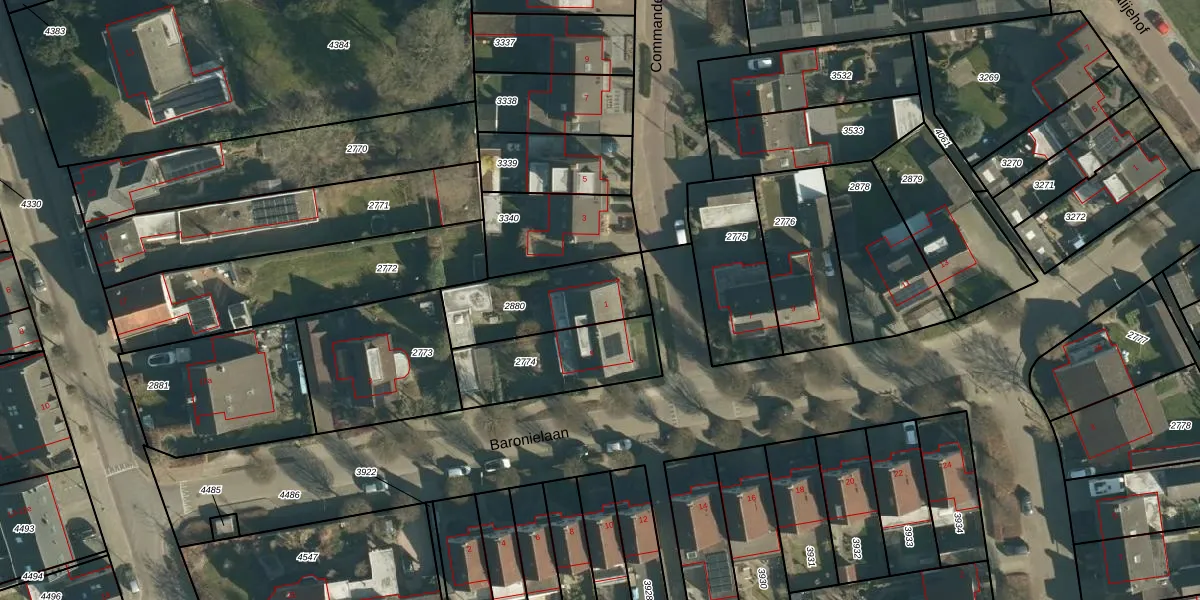 Het perceel waarop Commanderiestraat 1 staat heeft een oppervlakte van 354 m². Dit is een groot perceel. De perceeloppervlakte wordt geregistreerd door het Kadaster. Gedetailleerde informatie over de maten van dit perceel kunt u vinden in het rapport Kadastrale kaart met maatvoering van Commanderiestraat 1.