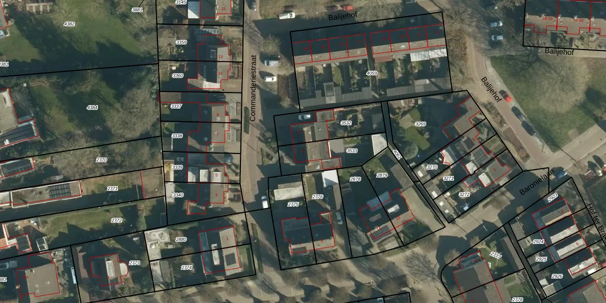 Gebruik de zoekbalk of klik op een perceel voor informatie over de adressen binnen dit perceel.