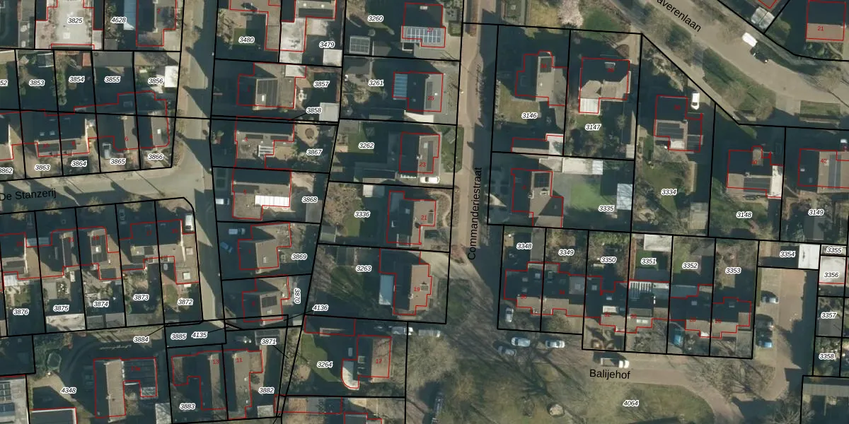 Commanderiestraat 21 is gelegen op kadastraal perceel APN03H3336. Deze kadastrale aanduiding is uniek en wordt gebruikt door het Kadaster om eigendomsrechten en andere zakelijke rechten vast te leggen. Het perceel maakt onderdeel uit van de kadastrale gemeente Alphen en Riel.