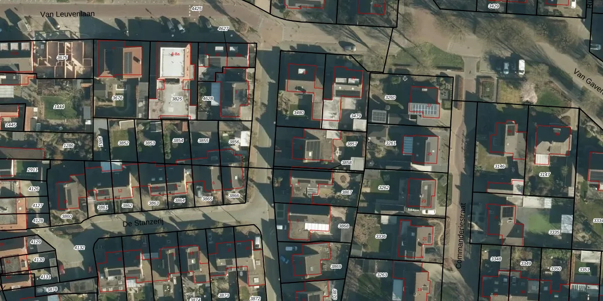 Het perceel waarop De Stanzerij 1 staat heeft een oppervlakte van 390 m². Dit is een groot perceel. De perceeloppervlakte wordt geregistreerd door het Kadaster. Gedetailleerde informatie over de maten van dit perceel kunt u vinden in het rapport Kadastrale kaart met maatvoering van De Stanzerij 1.