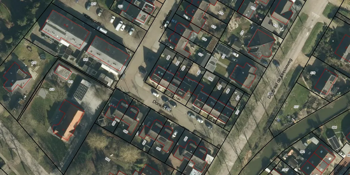 Gebruik de zoekbalk of klik op een perceel voor informatie over de adressen binnen dit perceel.