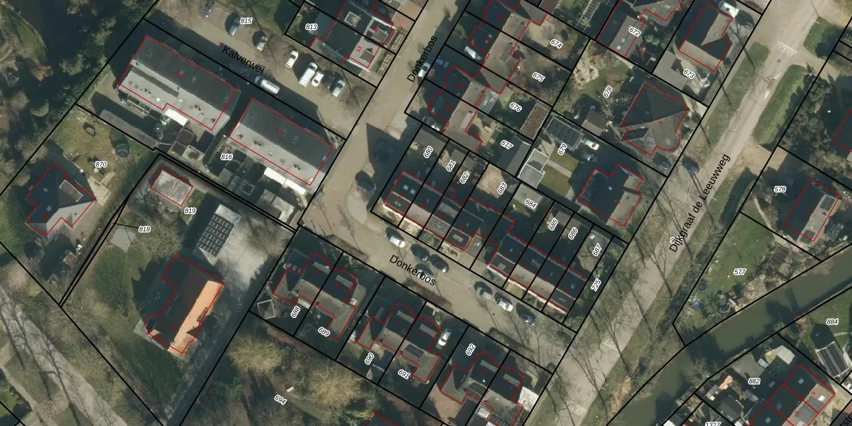 Gebruik de zoekbalk of klik op een perceel voor informatie over de adressen binnen dit perceel.