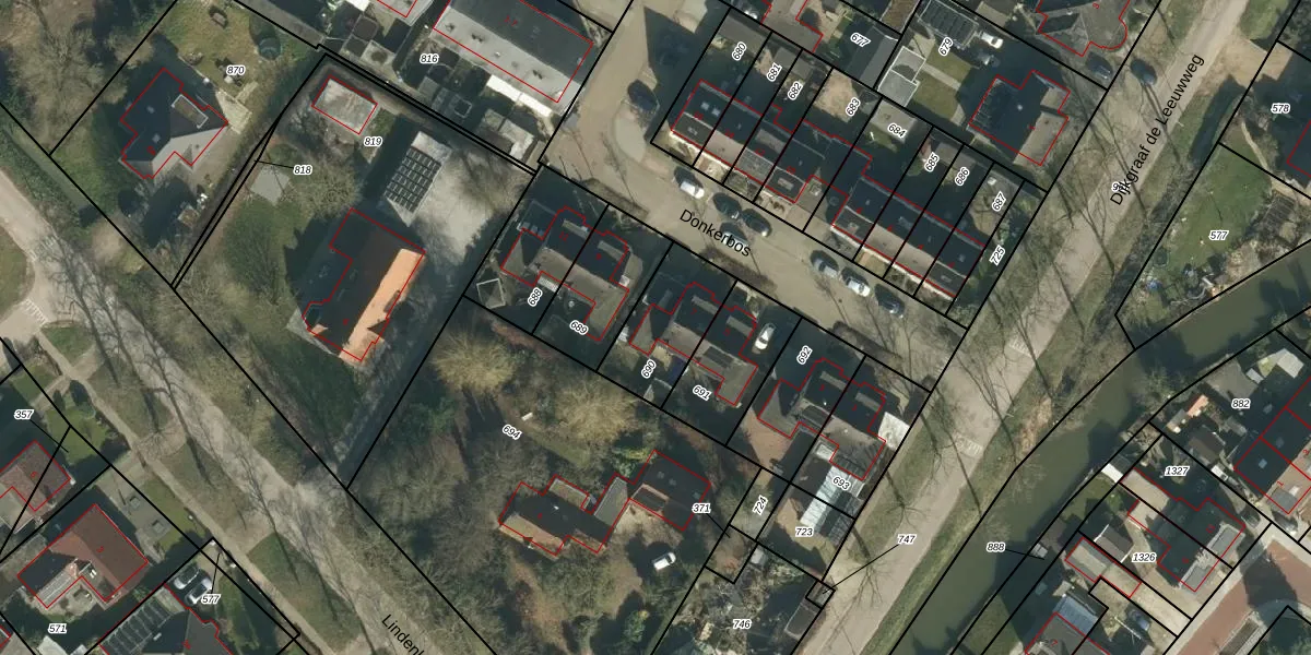 Gebruik de zoekbalk of klik op een perceel voor informatie over de adressen binnen dit perceel.