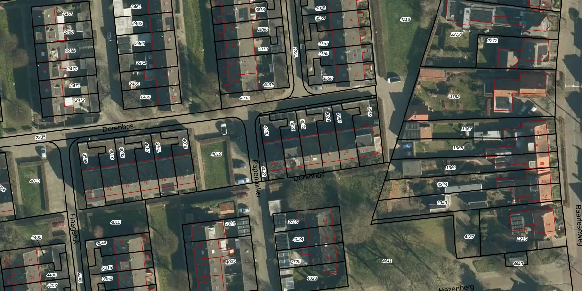 Het perceel waarop Dorenbos 9 staat heeft een oppervlakte van 142 m². Dit is een middelgroot perceel. De perceeloppervlakte wordt geregistreerd door het Kadaster. Gedetailleerde informatie over de maten van dit perceel kunt u vinden in het rapport Kadastrale kaart met maatvoering van Dorenbos 9.