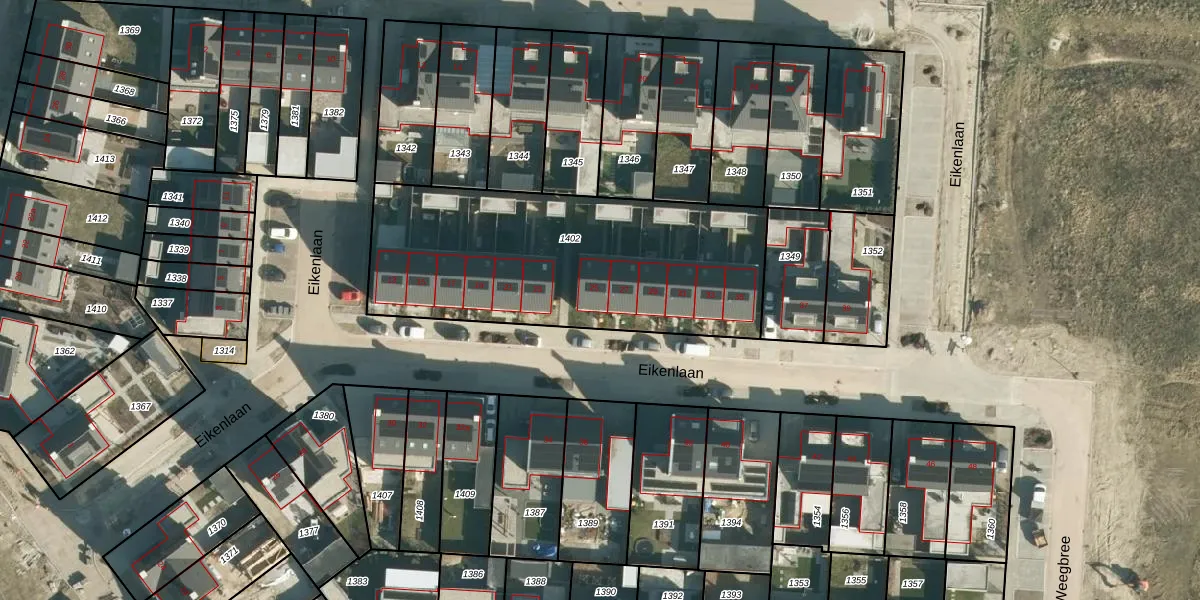 Het perceel waarop Eikenlaan 25 staat heeft een oppervlakte van 1440 m². Dit is een zeer groot perceel. De perceeloppervlakte wordt geregistreerd door het Kadaster. Gedetailleerde informatie over de maten van dit perceel kunt u vinden in het rapport Kadastrale kaart met maatvoering van Eikenlaan 25.