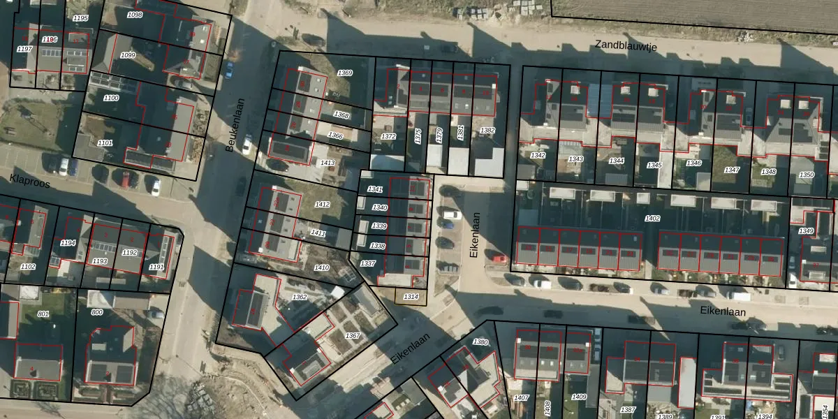 Het perceel waarop Eikenlaan 9 staat heeft een oppervlakte van 81 m². Dit is een klein perceel. De perceeloppervlakte wordt geregistreerd door het Kadaster. Gedetailleerde informatie over de maten van dit perceel kunt u vinden in het rapport Kadastrale kaart met maatvoering van Eikenlaan 9.