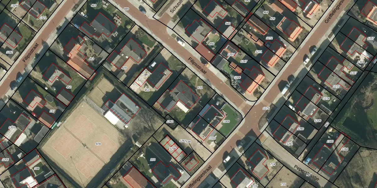 Het perceel waarop Filipsstraat 16 staat heeft een oppervlakte van 565 m². Dit is een groot perceel. De perceeloppervlakte wordt geregistreerd door het Kadaster. Gedetailleerde informatie over de maten van dit perceel kunt u vinden in het rapport Kadastrale kaart met maatvoering van Filipsstraat 16.