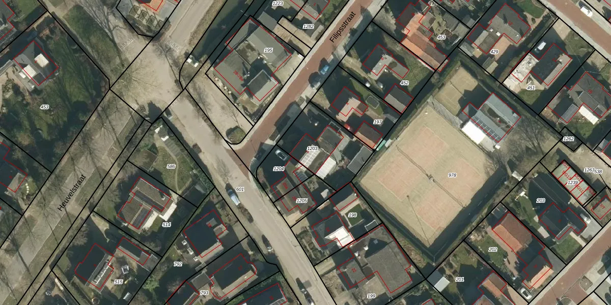 Het perceel waarop Filipsstraat 2 staat heeft een oppervlakte van 480 m². Dit is een groot perceel. De perceeloppervlakte wordt geregistreerd door het Kadaster. Gedetailleerde informatie over de maten van dit perceel kunt u vinden in het rapport Kadastrale kaart met maatvoering van Filipsstraat 2.