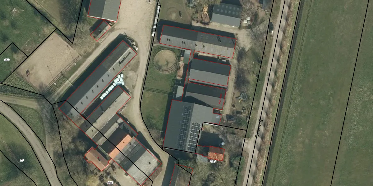 Het perceel waarop Geerweg 4-06 staat heeft een oppervlakte van 1,1 ha. Dit is een zeer groot perceel. De perceeloppervlakte wordt geregistreerd door het Kadaster. Gedetailleerde informatie over de maten van dit perceel kunt u vinden in het rapport Kadastrale kaart met maatvoering van Geerweg 4-06.