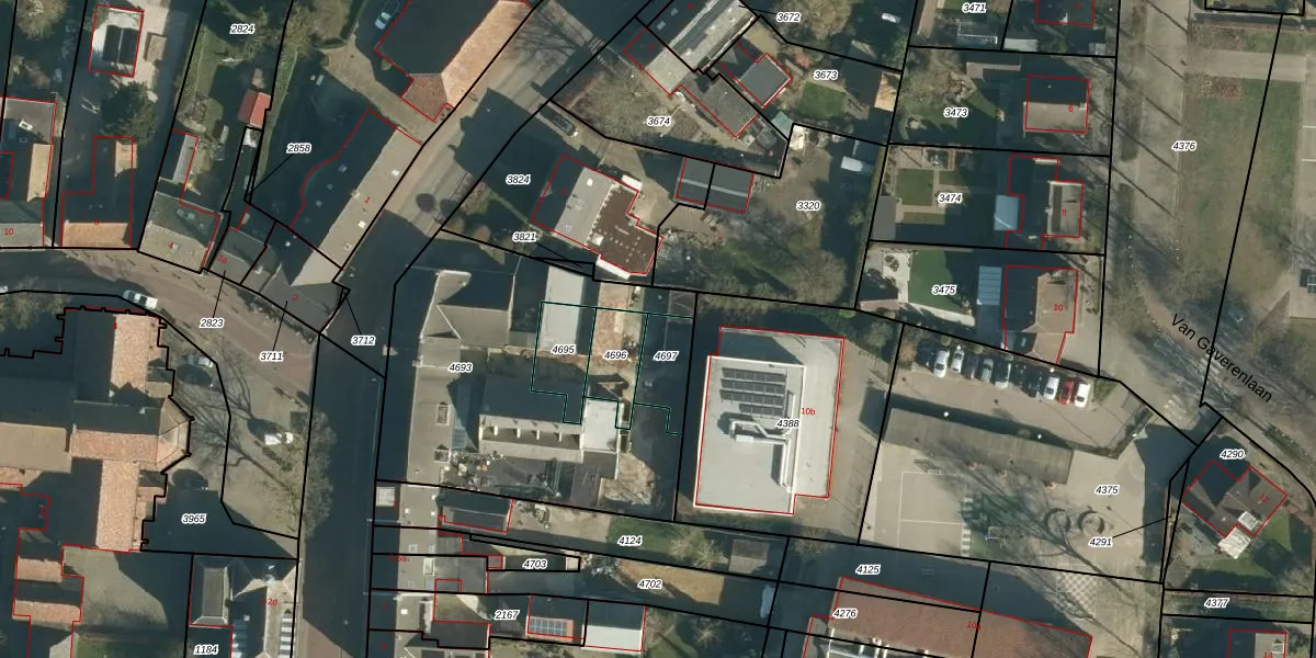 Gebruik de zoekbalk of klik op een perceel voor informatie over de adressen binnen dit perceel.