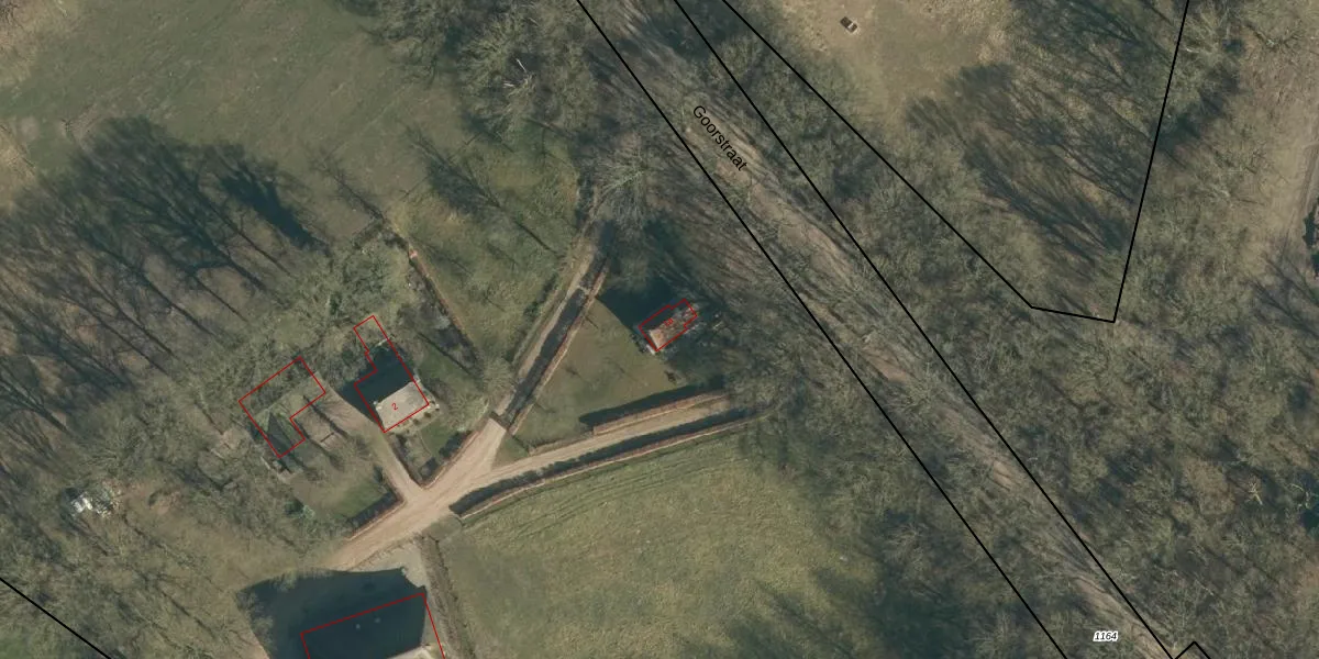 Het perceel waarop Goorstraat 1-a staat heeft een oppervlakte van 11,3 ha. Dit is een zeer groot perceel. De perceeloppervlakte wordt geregistreerd door het Kadaster. Gedetailleerde informatie over de maten van dit perceel kunt u vinden in het rapport Kadastrale kaart met maatvoering van Goorstraat 1-a.
