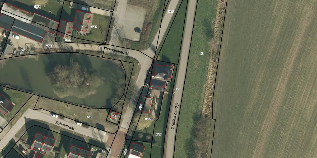 Het perceel waarop Greffelingsedijk 13 staat heeft een oppervlakte van 590 m². Dit is een groot perceel. De perceeloppervlakte wordt geregistreerd door het Kadaster. Gedetailleerde informatie over de maten van dit perceel kunt u vinden in het rapport Kadastrale kaart met maatvoering van Greffelingsedijk 13.