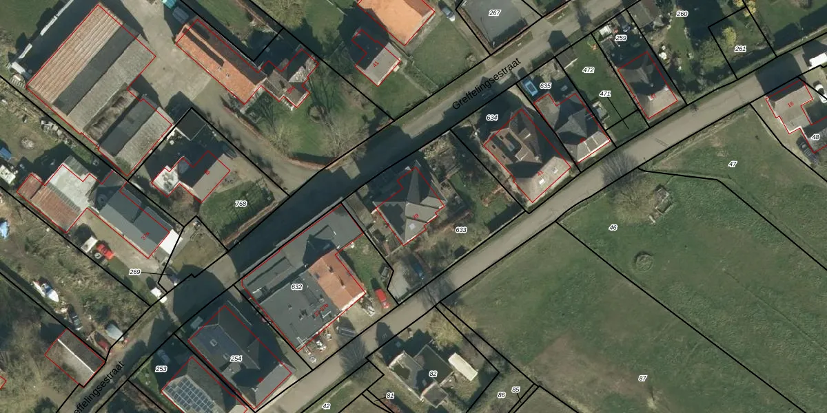 Het perceel waarop Greffelingsedijk 39 staat heeft een oppervlakte van 945 m². Dit is een groot perceel. De perceeloppervlakte wordt geregistreerd door het Kadaster. Gedetailleerde informatie over de maten van dit perceel kunt u vinden in het rapport Kadastrale kaart met maatvoering van Greffelingsedijk 39.
