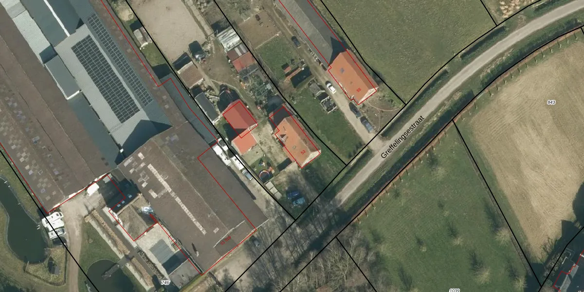 Het perceel waarop Greffelingsestraat 53 staat heeft een oppervlakte van 6500 m². Dit is een zeer groot perceel. De perceeloppervlakte wordt geregistreerd door het Kadaster. Gedetailleerde informatie over de maten van dit perceel kunt u vinden in het rapport Kadastrale kaart met maatvoering van Greffelingsestraat 53.