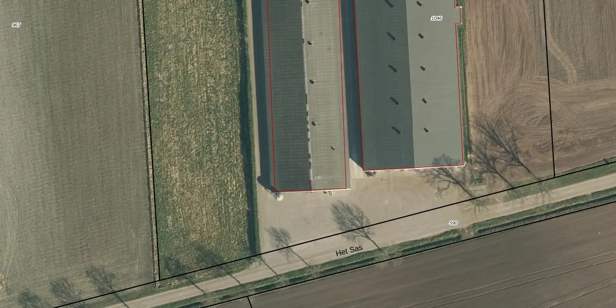 Het perceel waarop Het Sas 13 staat heeft een oppervlakte van 1,7 ha. Dit is een zeer groot perceel. De perceeloppervlakte wordt geregistreerd door het Kadaster. Gedetailleerde informatie over de maten van dit perceel kunt u vinden in het rapport Kadastrale kaart met maatvoering van Het Sas 13.