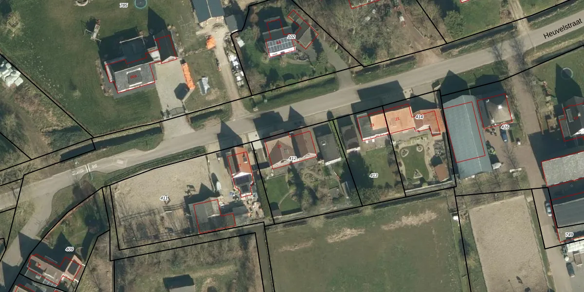 Het perceel waarop Heuvelstraat 25 staat heeft een oppervlakte van 910 m². Dit is een groot perceel. De perceeloppervlakte wordt geregistreerd door het Kadaster. Gedetailleerde informatie over de maten van dit perceel kunt u vinden in het rapport Kadastrale kaart met maatvoering van Heuvelstraat 25.