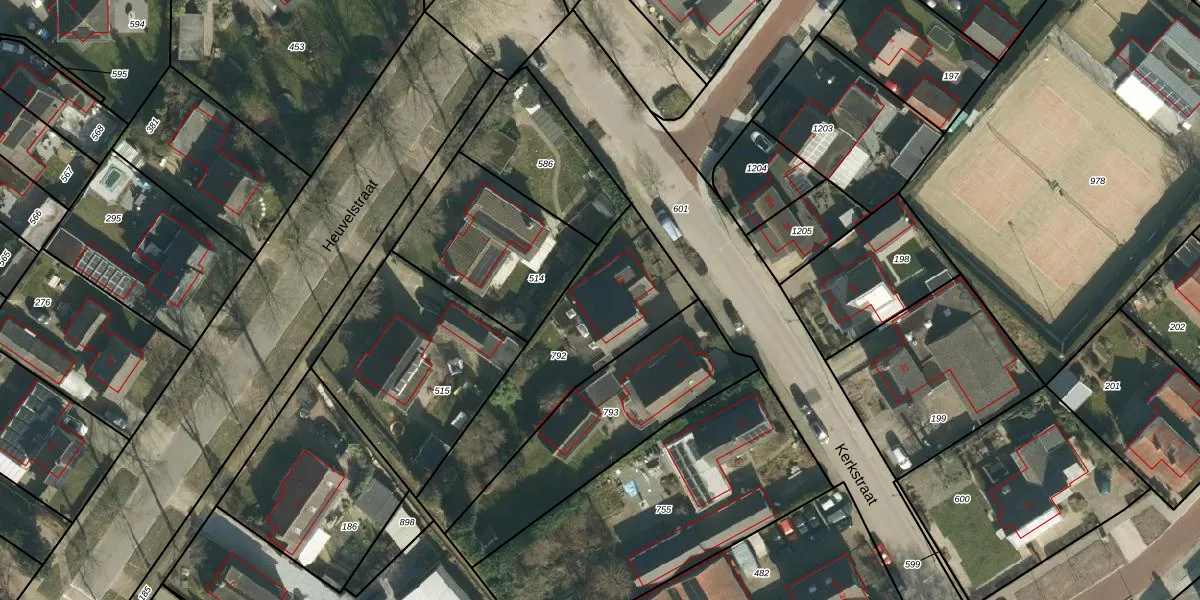 Het perceel waarop Kerkstraat 19 staat heeft een oppervlakte van 700 m². Dit is een groot perceel. De perceeloppervlakte wordt geregistreerd door het Kadaster. Gedetailleerde informatie over de maten van dit perceel kunt u vinden in het rapport Kadastrale kaart met maatvoering van Kerkstraat 19.