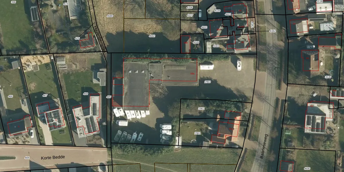 Het perceel waarop Korte Bedde 2-c staat heeft een oppervlakte van 3586 m². Dit is een zeer groot perceel. De perceeloppervlakte wordt geregistreerd door het Kadaster. Gedetailleerde informatie over de maten van dit perceel kunt u vinden in het rapport Kadastrale kaart met maatvoering van Korte Bedde 2-c.