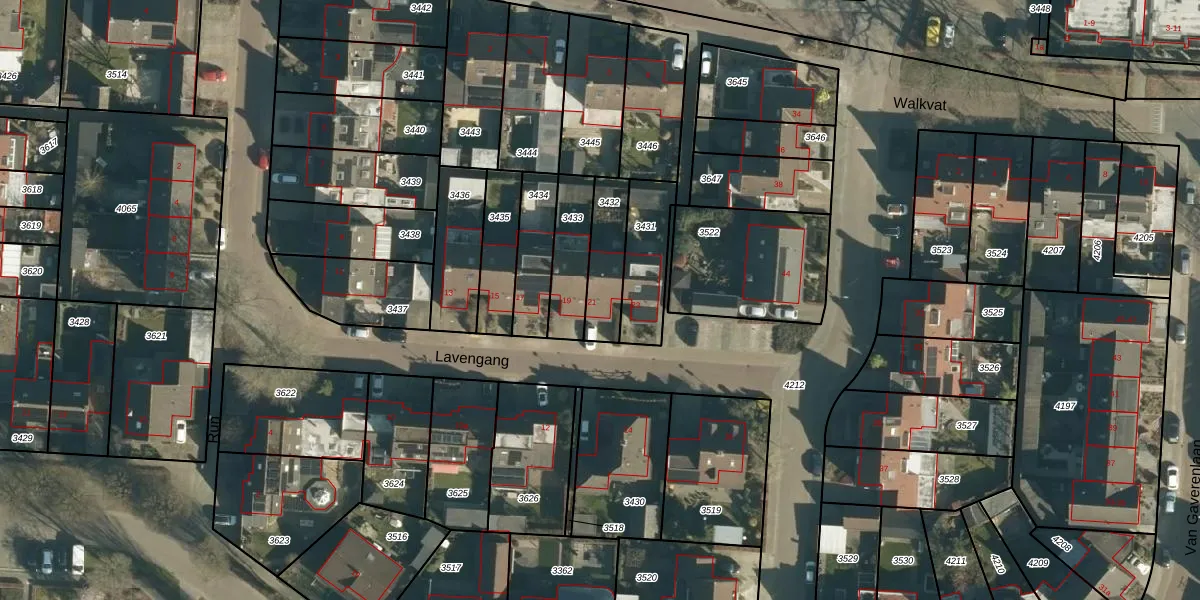 Het perceel waarop Lavengang 21 staat heeft een oppervlakte van 164 m². Dit is een middelgroot perceel. De perceeloppervlakte wordt geregistreerd door het Kadaster. Gedetailleerde informatie over de maten van dit perceel kunt u vinden in het rapport Kadastrale kaart met maatvoering van Lavengang 21.