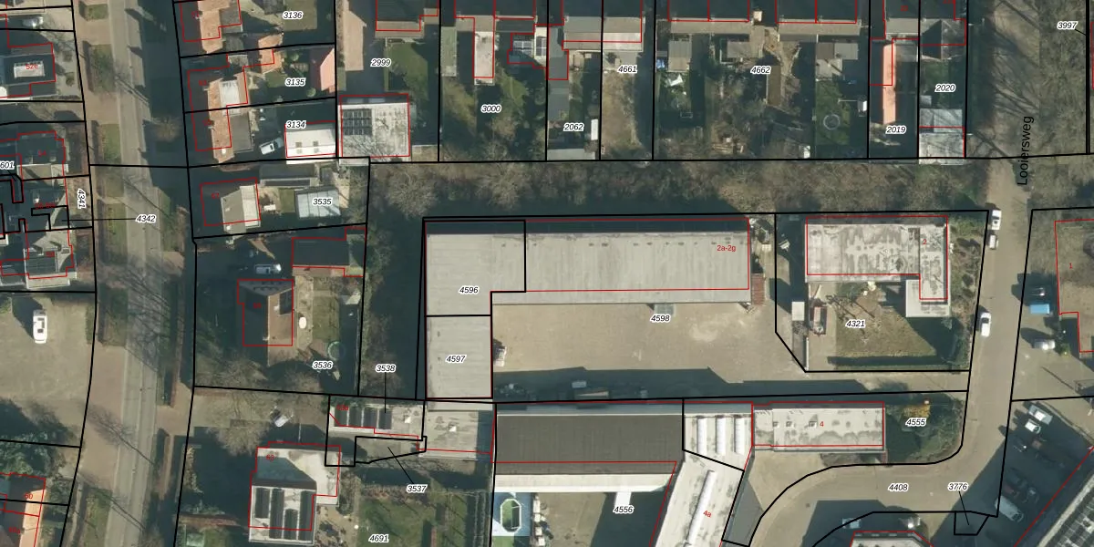 Looiersweg 2-e is gelegen op kadastraal perceel APN03H4598. Deze kadastrale aanduiding is uniek en wordt gebruikt door het Kadaster om eigendomsrechten en andere zakelijke rechten vast te leggen. Het perceel maakt onderdeel uit van de kadastrale gemeente Alphen en Riel.