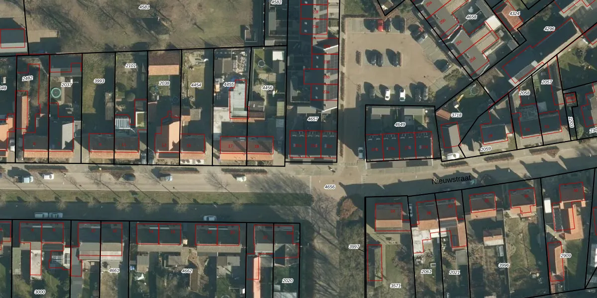 Het perceel waarop Nieuwstraat 21-a staat heeft een oppervlakte van 1305 m². Dit is een zeer groot perceel. De perceeloppervlakte wordt geregistreerd door het Kadaster. Gedetailleerde informatie over de maten van dit perceel kunt u vinden in het rapport Kadastrale kaart met maatvoering van Nieuwstraat 21-a.