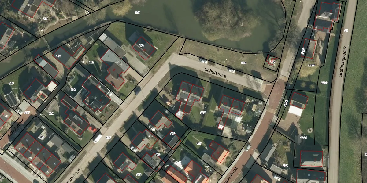 Het perceel waarop Schutstraat 12 staat heeft een oppervlakte van 1315 m². Dit is een zeer groot perceel. De perceeloppervlakte wordt geregistreerd door het Kadaster. Gedetailleerde informatie over de maten van dit perceel kunt u vinden in het rapport Kadastrale kaart met maatvoering van Schutstraat 12.
