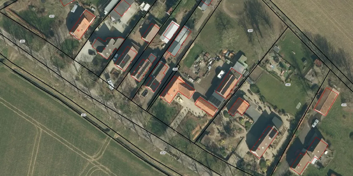 Het perceel waarop Sluisweg 16 staat heeft een oppervlakte van 3220 m². Dit is een zeer groot perceel. De perceeloppervlakte wordt geregistreerd door het Kadaster. Gedetailleerde informatie over de maten van dit perceel kunt u vinden in het rapport Kadastrale kaart met maatvoering van Sluisweg 16.