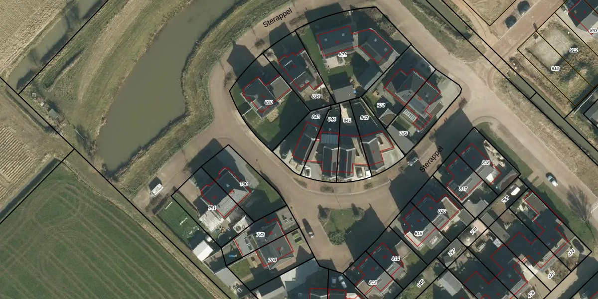 Sterappel 9 is gelegen op kadastraal perceel APT00Q843. Deze kadastrale aanduiding is uniek en wordt gebruikt door het Kadaster om eigendomsrechten en andere zakelijke rechten vast te leggen. Het perceel maakt onderdeel uit van de kadastrale gemeente Appeltern.
