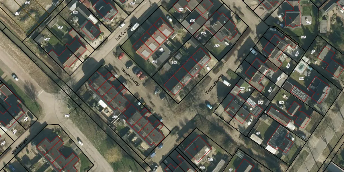 Het perceel waarop Teeuwskamp 1 staat heeft een oppervlakte van 750 m². Dit is een groot perceel. De perceeloppervlakte wordt geregistreerd door het Kadaster. Gedetailleerde informatie over de maten van dit perceel kunt u vinden in het rapport Kadastrale kaart met maatvoering van Teeuwskamp 1.