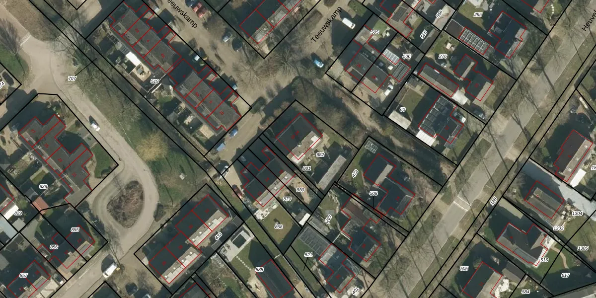 Het perceel waarop Teeuwskamp 20 staat heeft een oppervlakte van 506 m². Dit is een groot perceel. De perceeloppervlakte wordt geregistreerd door het Kadaster. Gedetailleerde informatie over de maten van dit perceel kunt u vinden in het rapport Kadastrale kaart met maatvoering van Teeuwskamp 20.