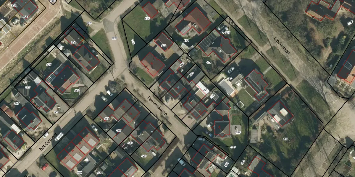 Gebruik de zoekbalk of klik op een perceel voor informatie over de adressen binnen dit perceel.