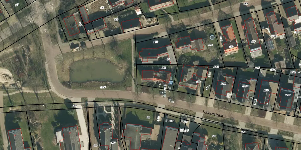 Het perceel waarop Valksestraat 16 staat heeft een oppervlakte van 400 m². Dit is een groot perceel. De perceeloppervlakte wordt geregistreerd door het Kadaster. Gedetailleerde informatie over de maten van dit perceel kunt u vinden in het rapport Kadastrale kaart met maatvoering van Valksestraat 16.
