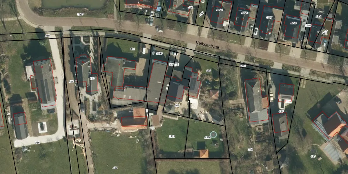 Het perceel waarop Valksestraat 7 staat heeft een oppervlakte van 378 m². Dit is een groot perceel. De perceeloppervlakte wordt geregistreerd door het Kadaster. Gedetailleerde informatie over de maten van dit perceel kunt u vinden in het rapport Kadastrale kaart met maatvoering van Valksestraat 7.