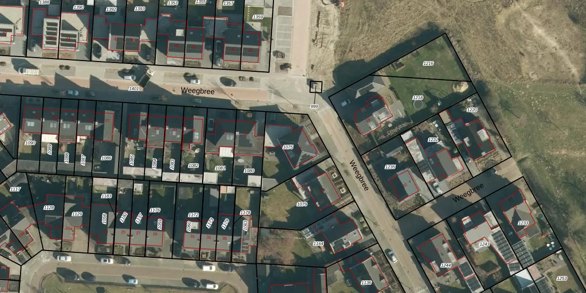Gebruik de zoekbalk of klik op een perceel voor informatie over de adressen binnen dit perceel.